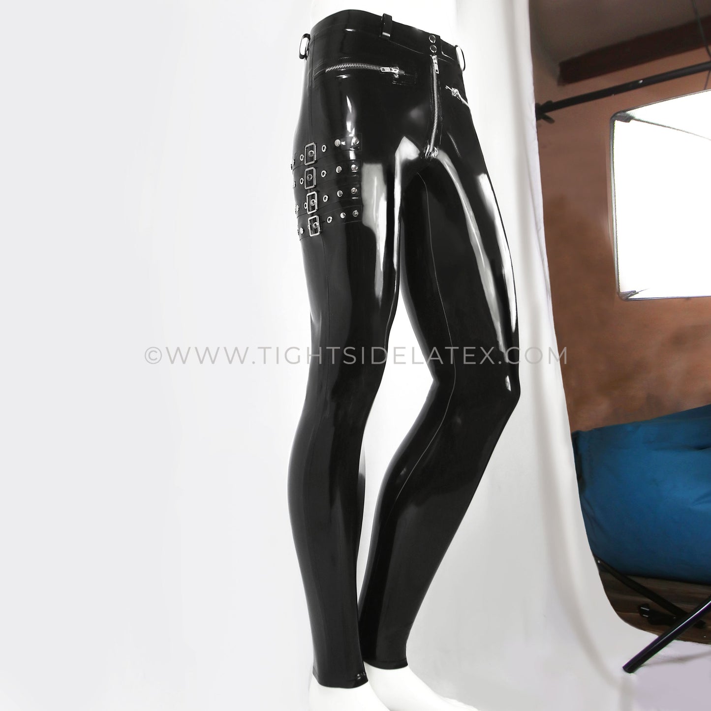 Mens Latex Buckle and Belt Leggings