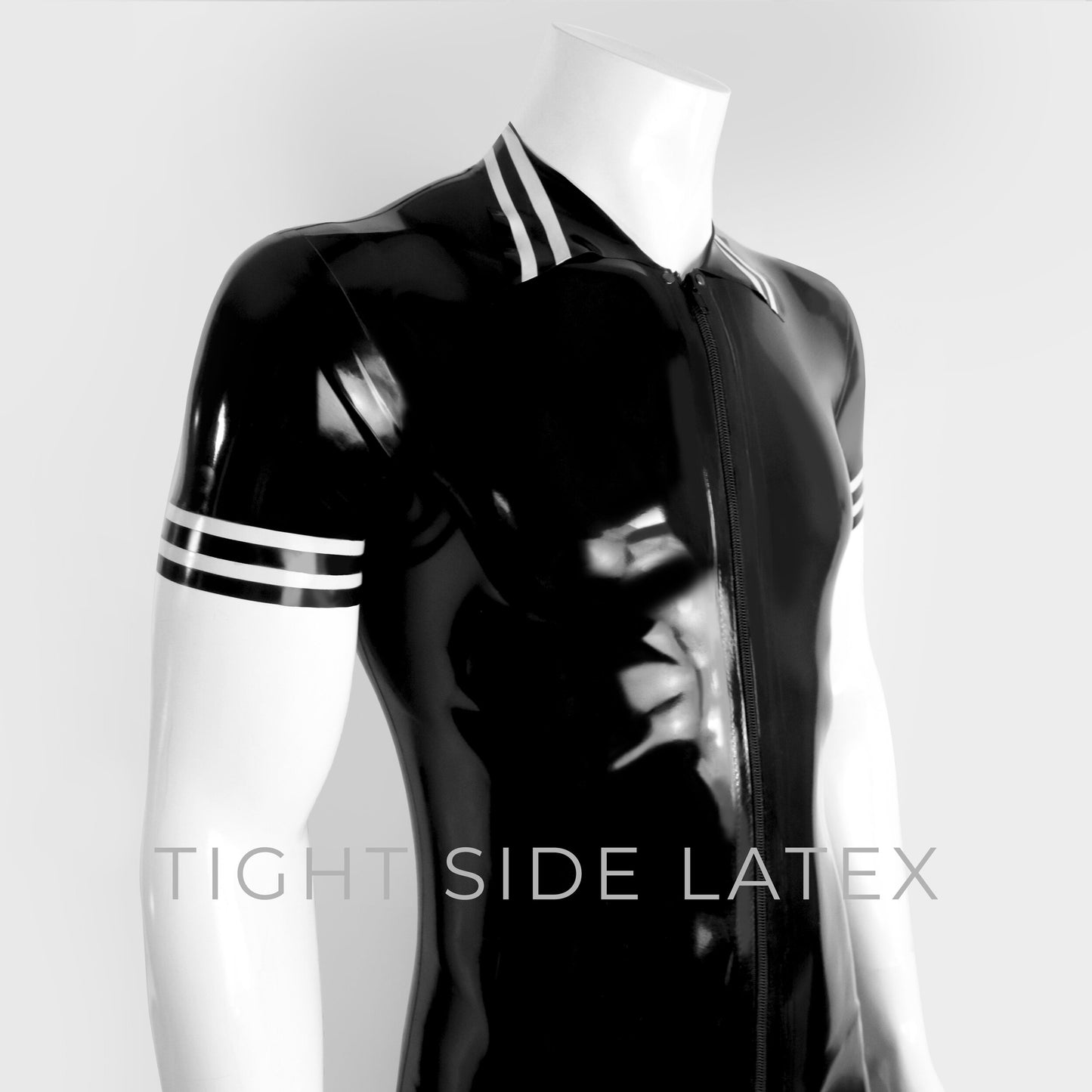Latex Catsuit - Polo Collar And Double Stripe Trims