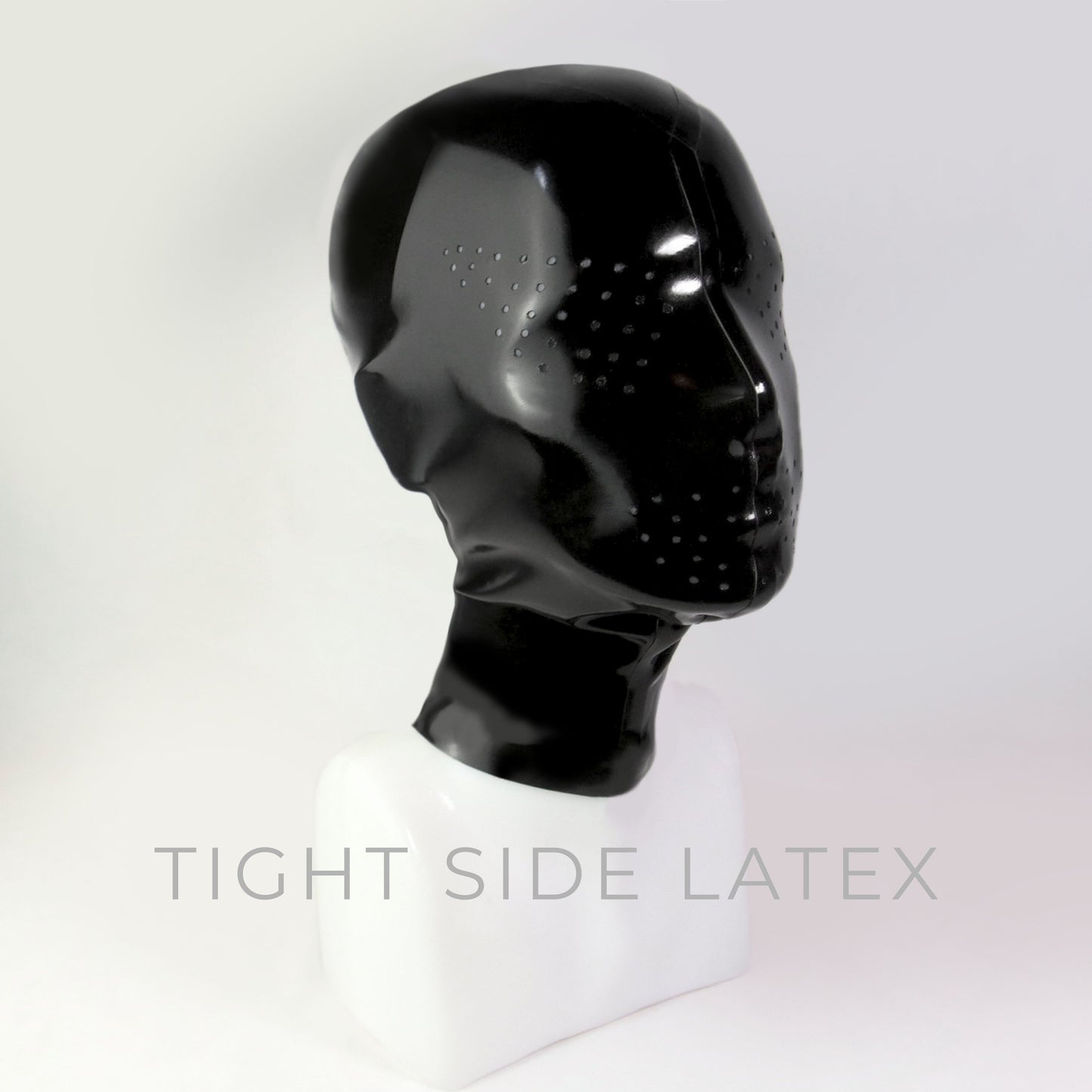 This sensual latex mask has fine laser cut holes that are extremely resistant to tearing and make breathing possible.
