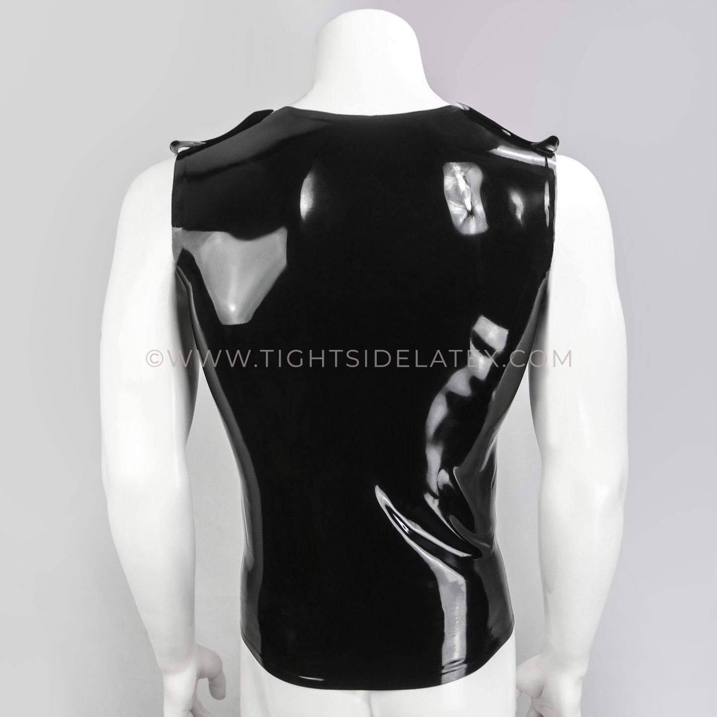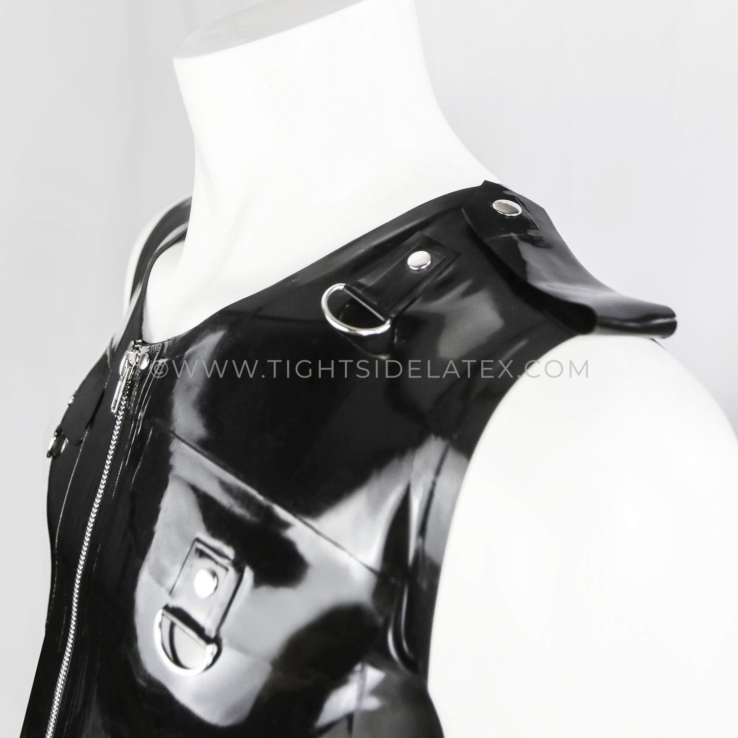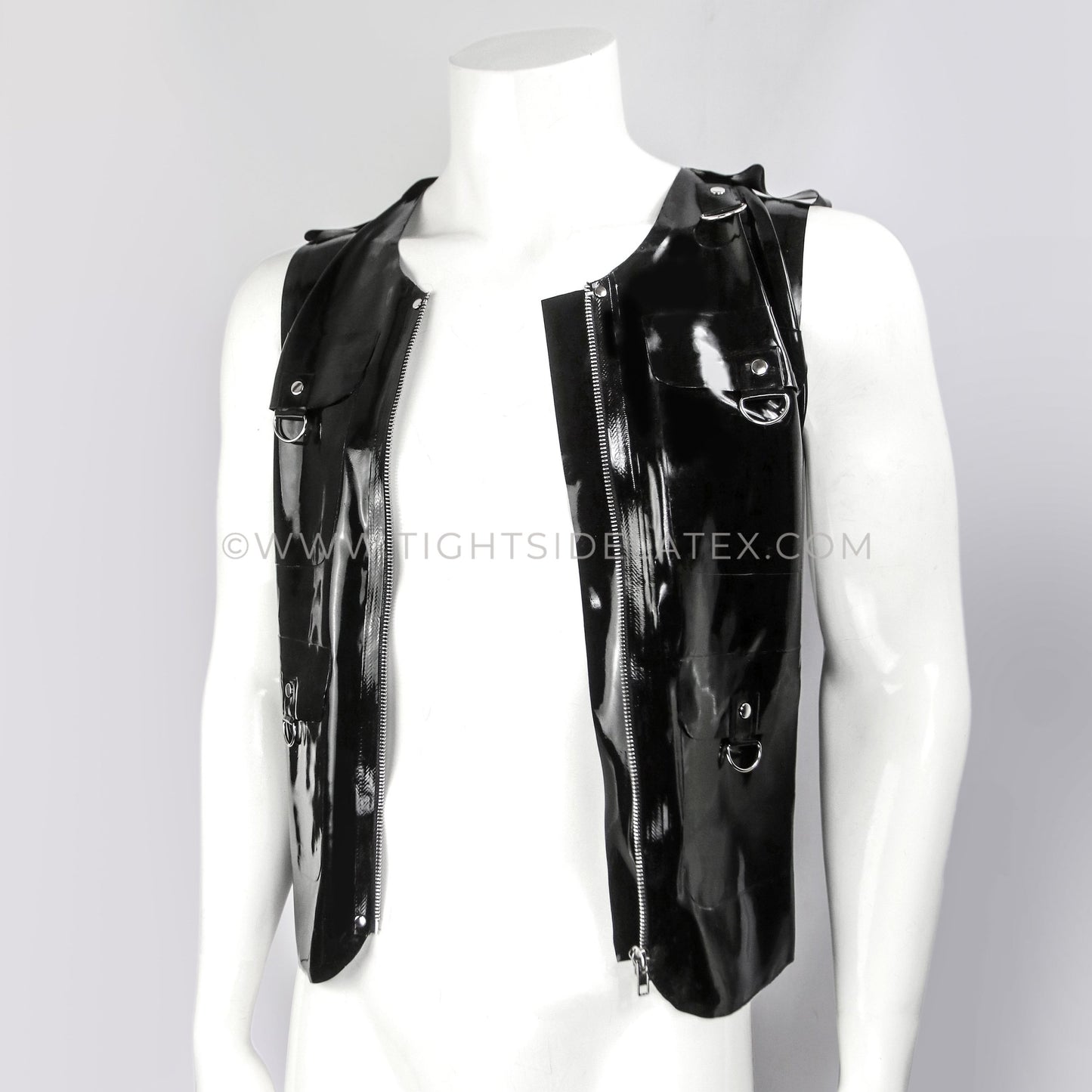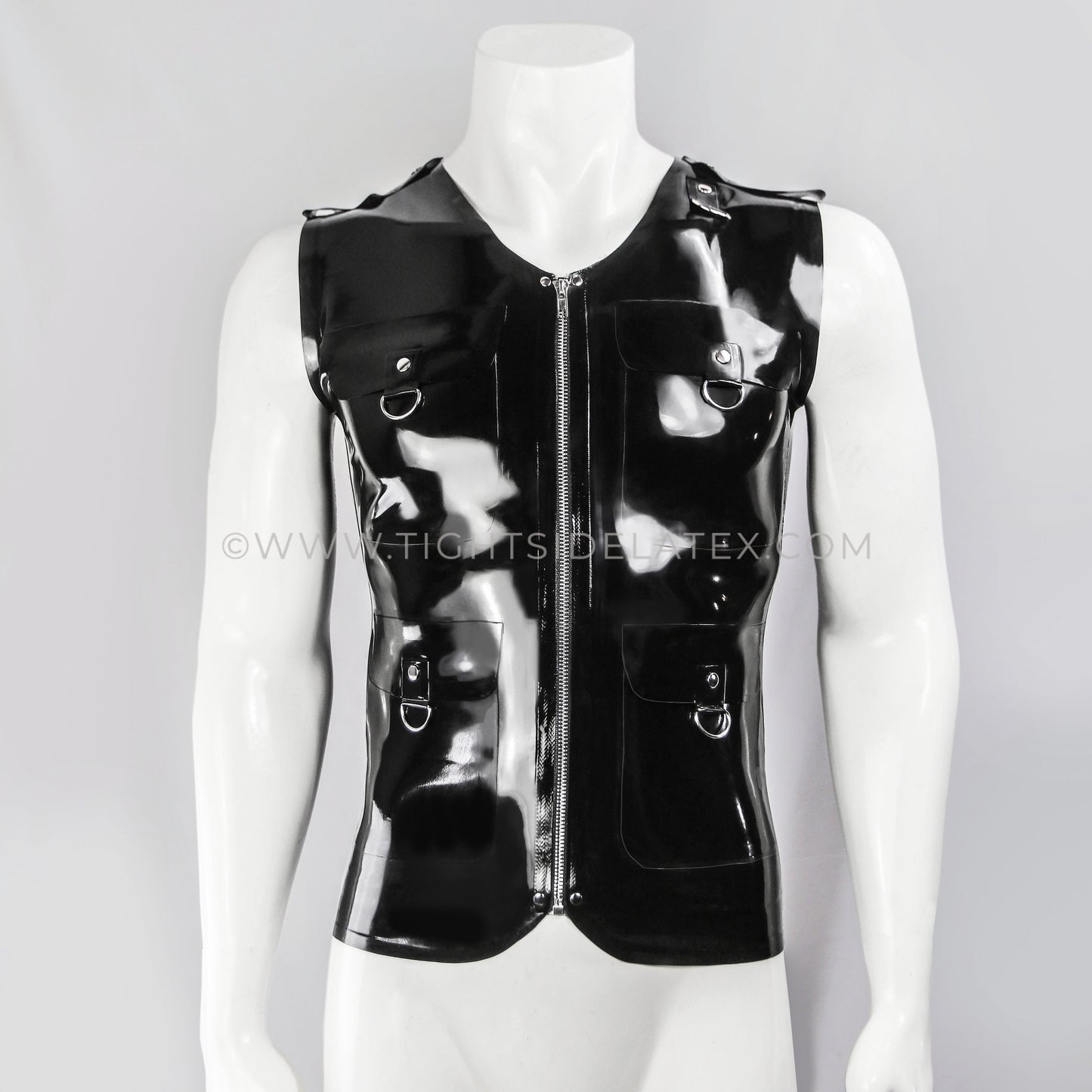 Tight fitting military style vest with metal zip front fastening which is protected with an inner zip guard.