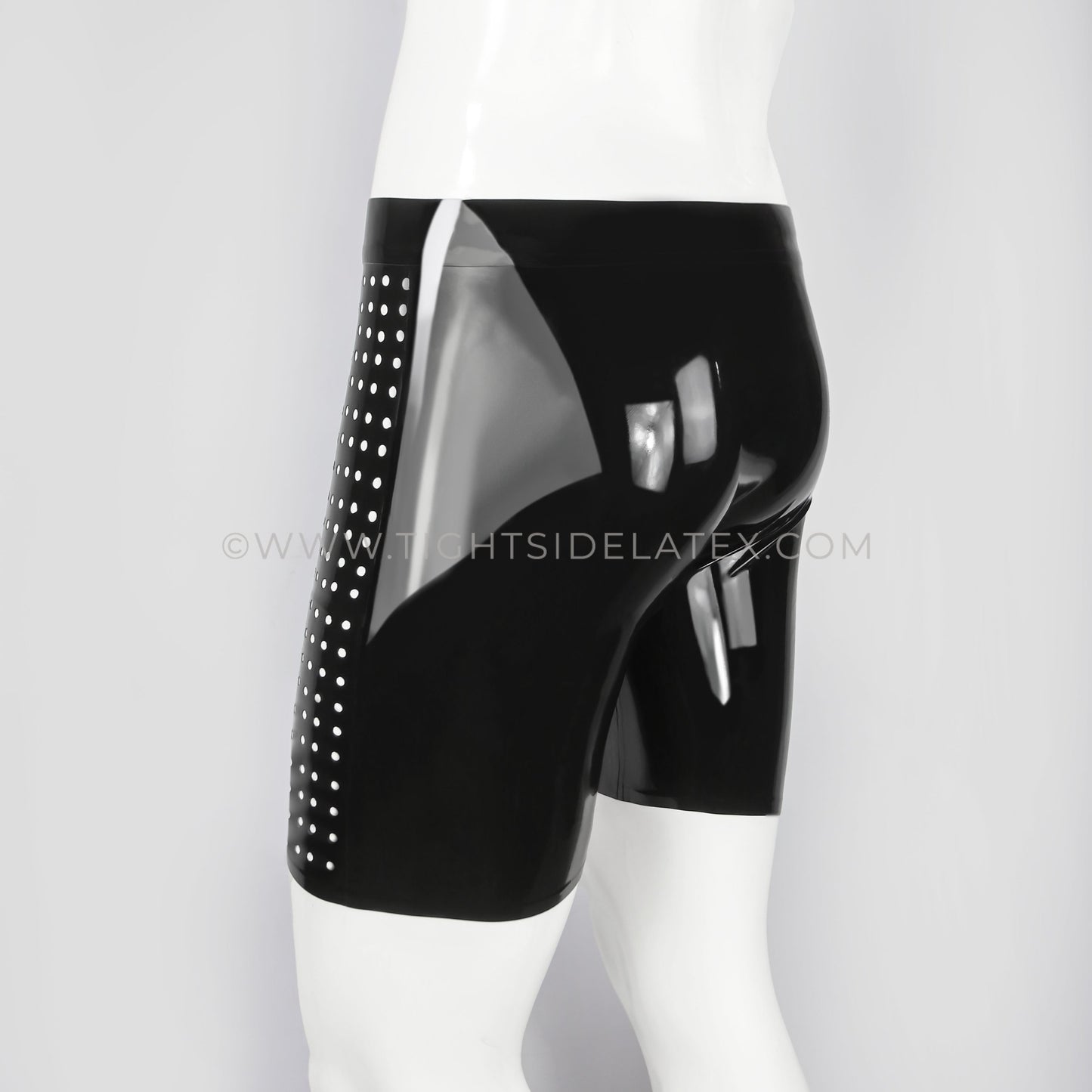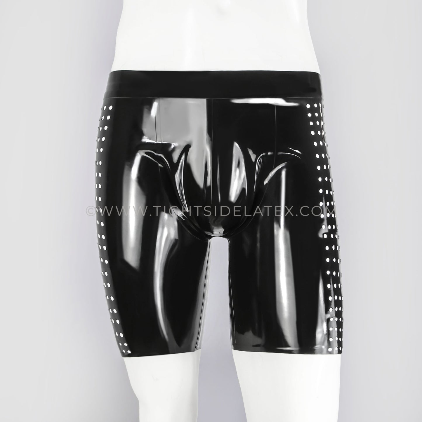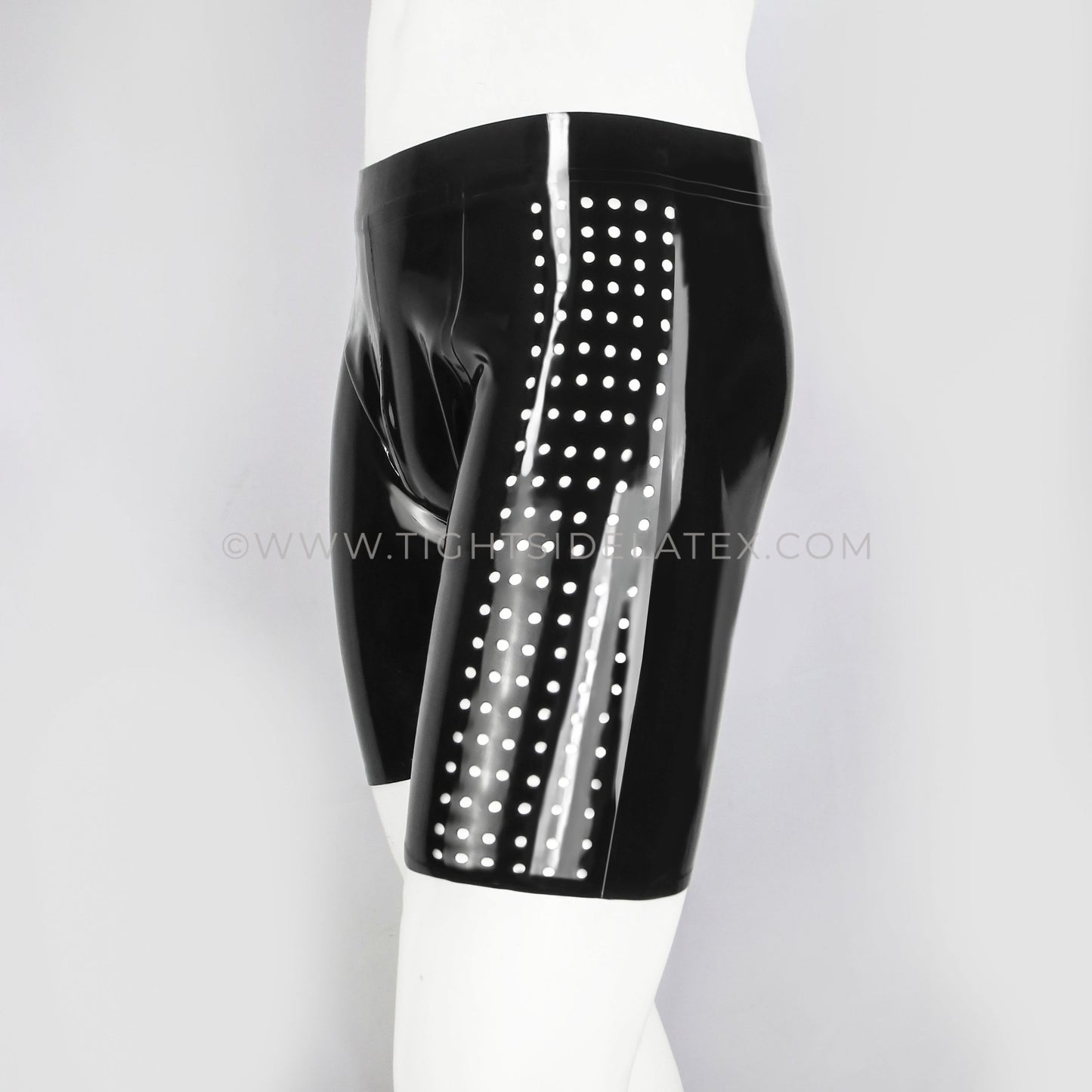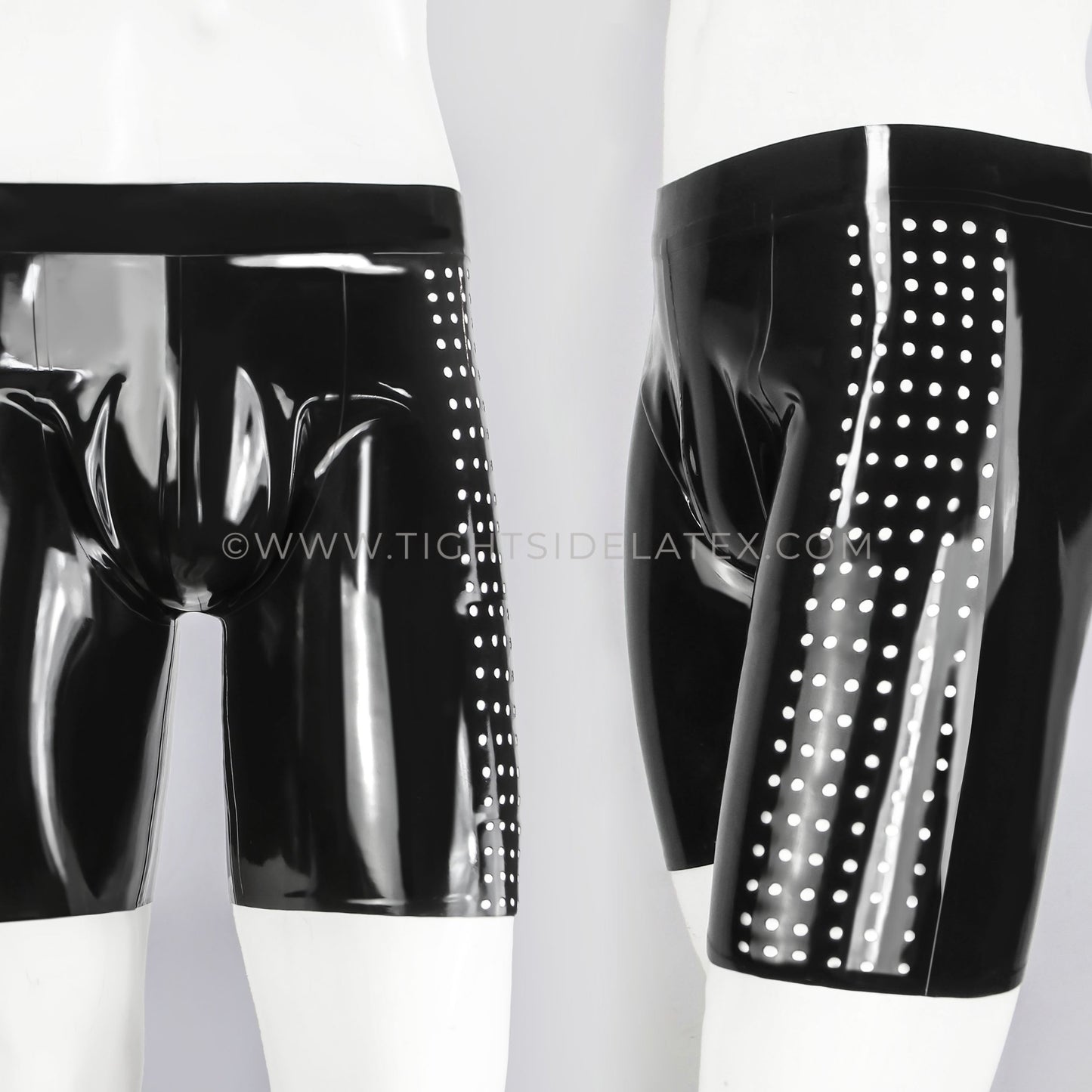 Reinforced with a 1cm strip of latex thickness 0.5mm round the hem to prevent them riding up.
