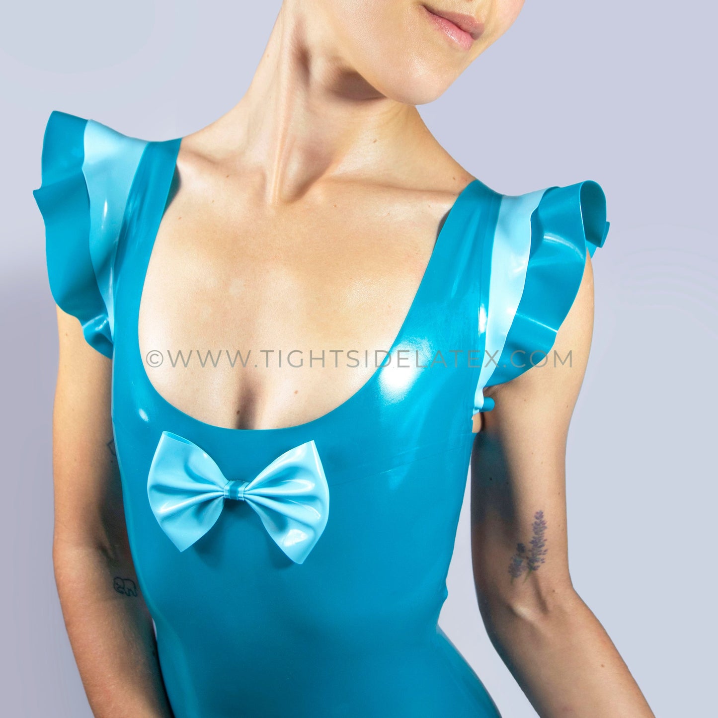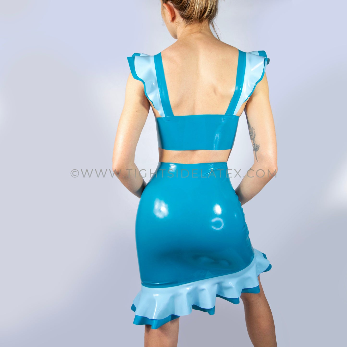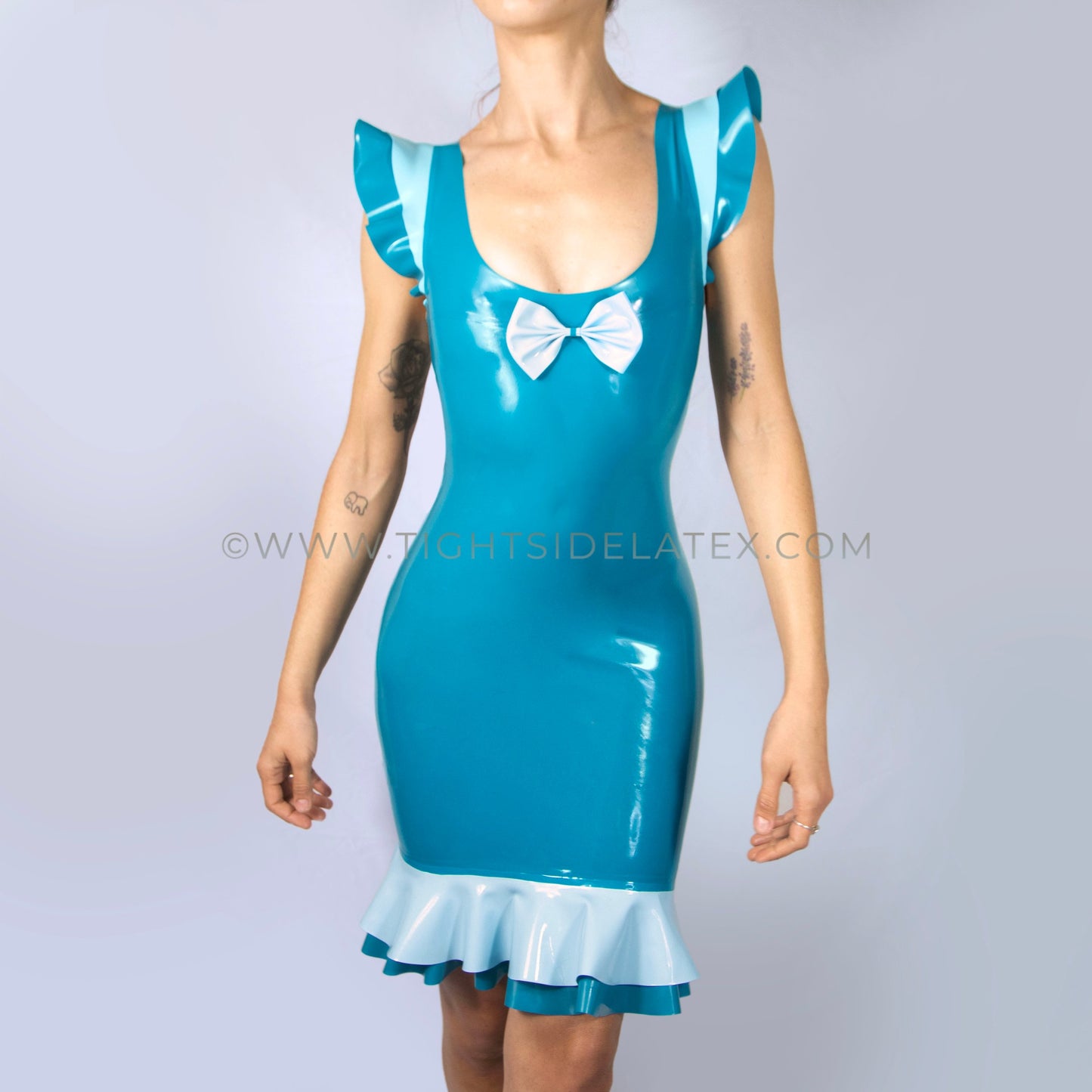 Teal Blue Latex Dress With Double Ruffle Detail